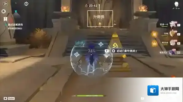返回最终试炼位置,启动遗迹控制台,往地图的南方向走,进入升降梯,前往最终挑战