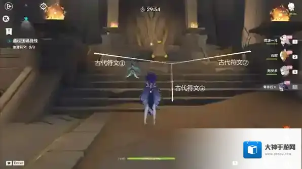 由于推荐队伍配置的输出足够,可直接前往3处古代符文位置