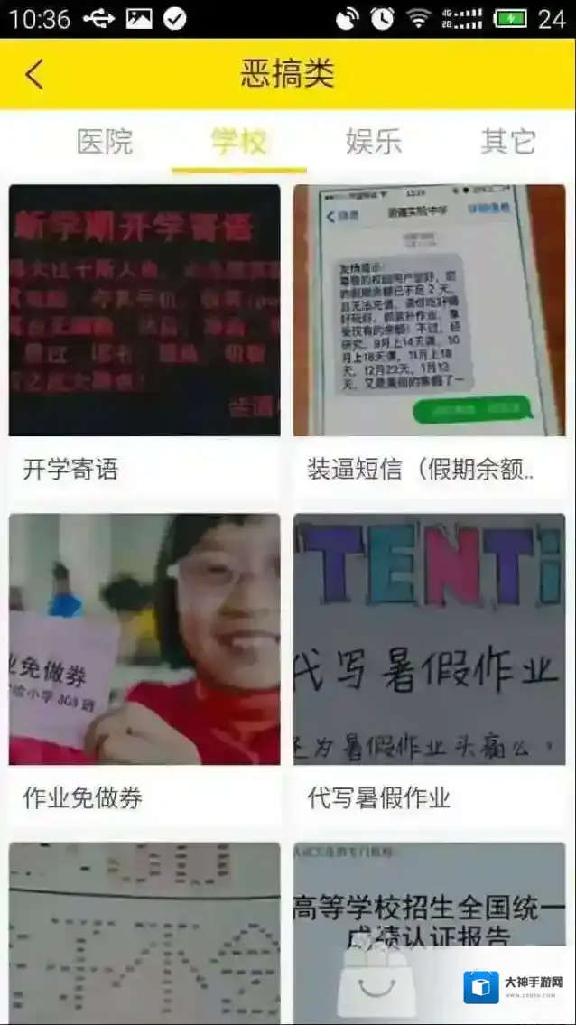 恶搞类的图片应该也相当好玩。进入恶搞页面,从“医院”、“学校”、“娱乐”、“其他”项目中,选择你要恶搞的具体频道。医院类别下的捐精单、死亡证明、亲自鉴定这些是绝对不能开玩笑的啊,还是找学校的恶搞玩玩算了。
