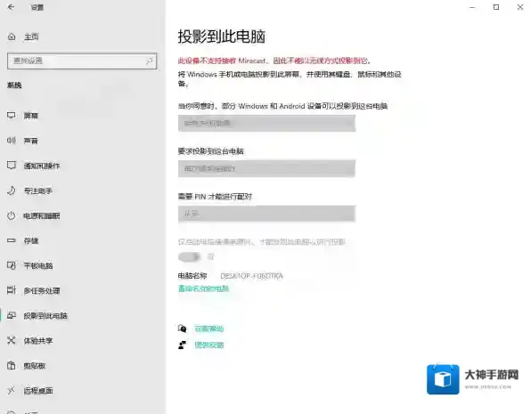 第六步,如果大家系统里的投影到此电脑功能是灰色不可用的状态,此时,进入到系统的应用界面。