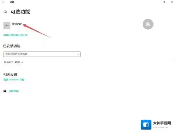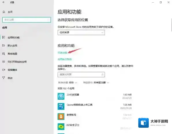 第七步,选择应用和功能右侧界面中的可选功能选项。