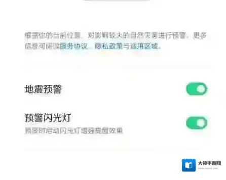4、最后玩家选择开启地震预警、预警闪光灯、通知提醒等选项即可。