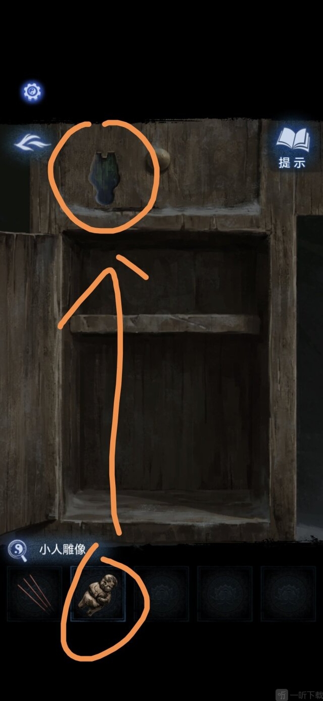 将小人雕像放在旁边房间里的柜子凹槽上,获得探头