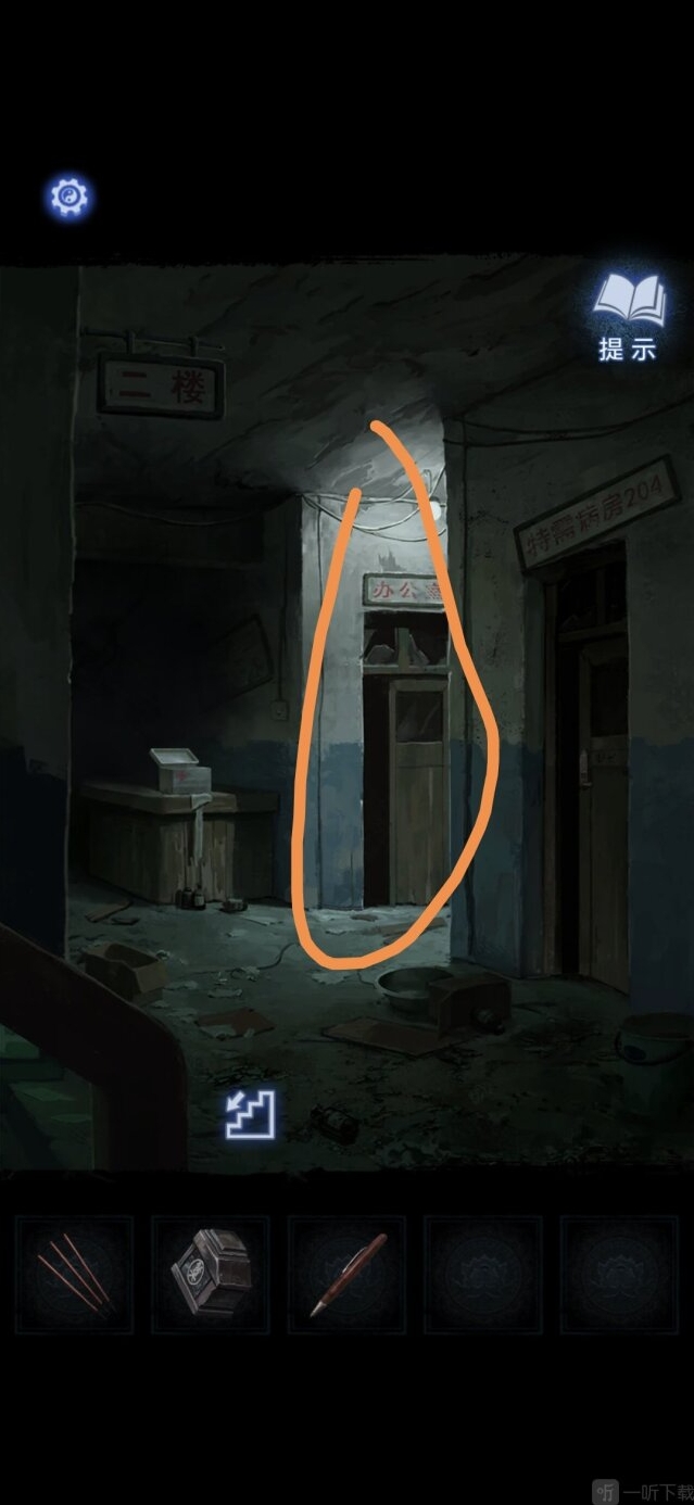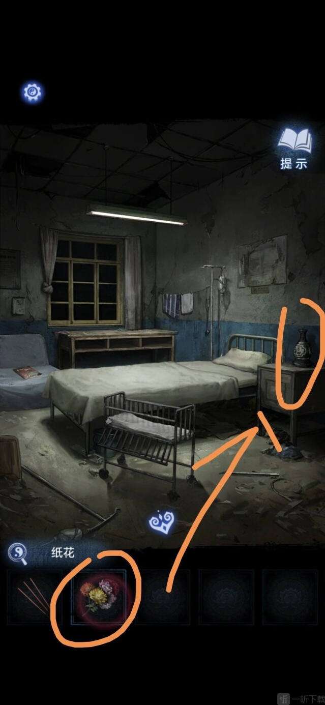 进入办公室,点击墙面,将锦旗挂在墙上,根据台灯下的资料排列锦旗顺序,打开停尸柜,获得香
