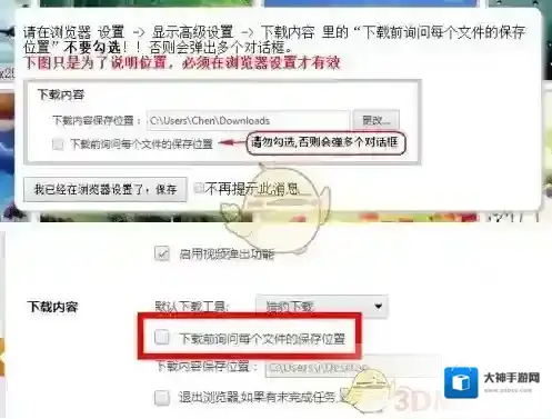 7.弹出提示,需要关闭下载前询问每个文件的保存位置(点击猎豹浏览器点击左上角头像→设置→更多设置里关闭下载前询问每个文件的保存位置)
