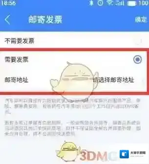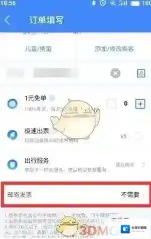 5.在对应车次购买页面的下方有一个选项,是否需要邮寄发票,选择进入。