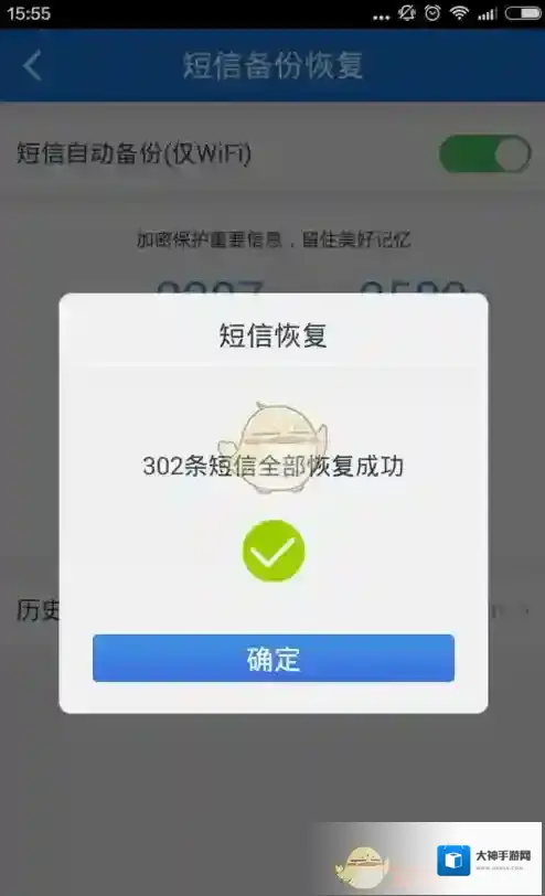 最后会弹出短信恢复面板,显示短信已经全部恢复到本机,点击确定,还原完成