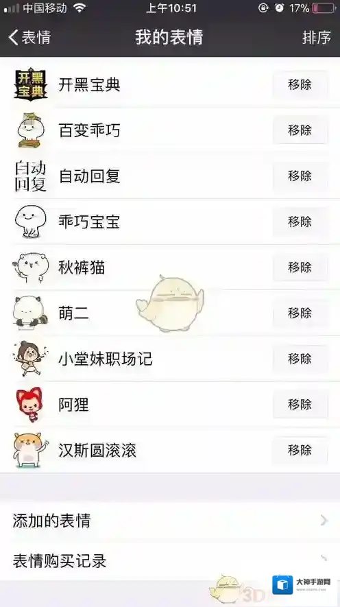 我们也可以在我-表情-界面当中去进行设置,这里可以删减专辑表情,和我们自己添加的表情(拖动到最下面)