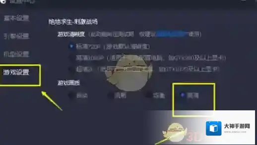 5、最后我们点击游戏设置,将画面改了高清,这样就能发挥你独立显卡的威力了。
