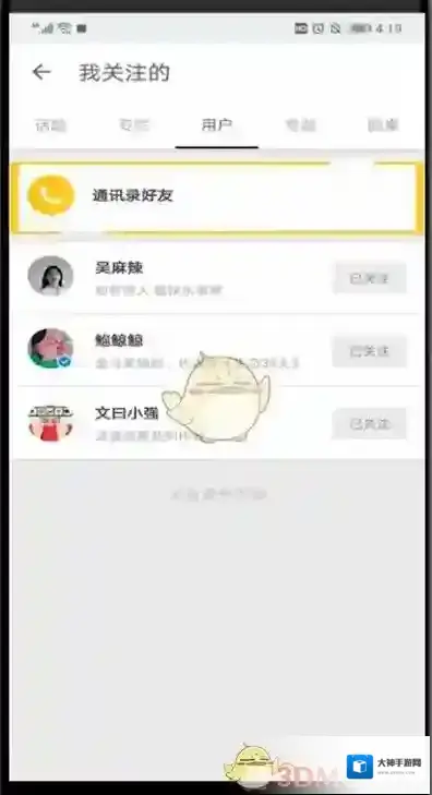 5、点击用户,点击通讯录好友即可查找通讯录好友。