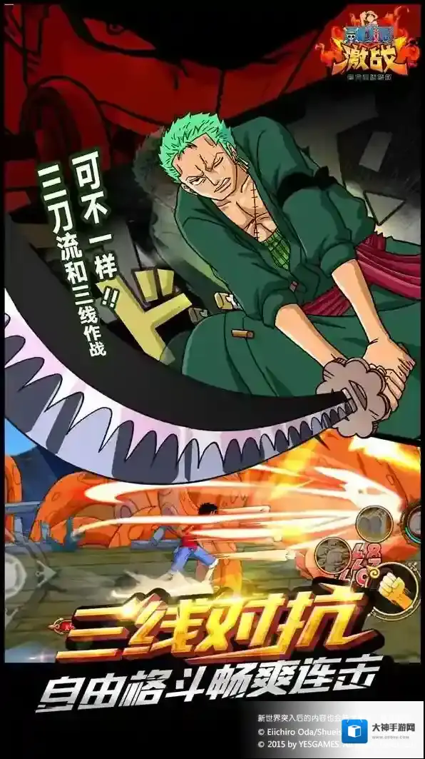在航海王的世界当中,格斗才是唯一的主旋律!《航海王激战》完美呈现原作中的激战世界,一一还原了路飞、佐罗、山智等角色的经典大招,每种招式根据原著设计了击退、击晕等打击效果,实战时根据不同技能的效果,找准合适的施技顺序,再配合每个角色华丽的无双大招,无限连招爽快格斗!无论是佐罗的三千世界还是路飞的螺旋橡皮弹,从指尖开启的航海王格斗世界即将开启!