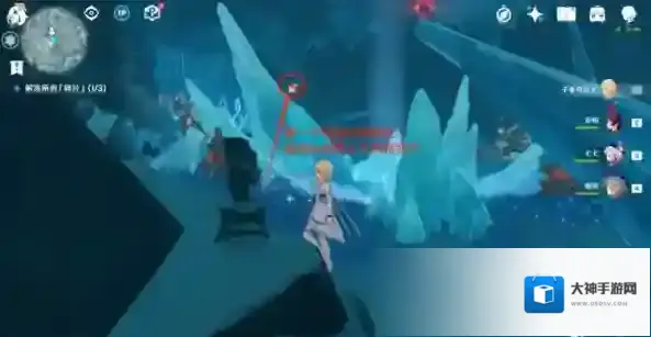 地洞中心可以看到第二块奇怪的冰,一样的原理,需要找四颗深赤之石才能彻底击碎冰块。