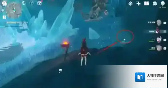第八步:第一个火灵就是冰层上面下来的那个,很明显,直接过去触碰后跟着走就行了。