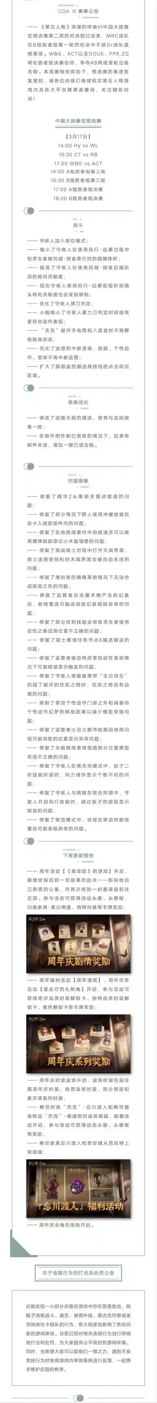 第五人格2023年3月16日维护公告