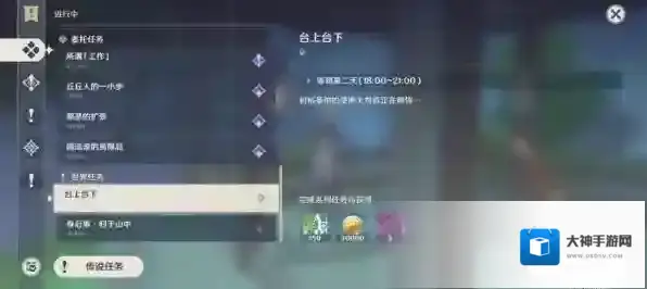 有趣的来了,提交物品后任务要你把时间调整到第二天的晚上六点到九点,点击主页派蒙调整游戏时间