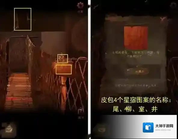 4、我们结合星宿图线索,获得密码:尾柳室井,使用密码即可打开皮包。