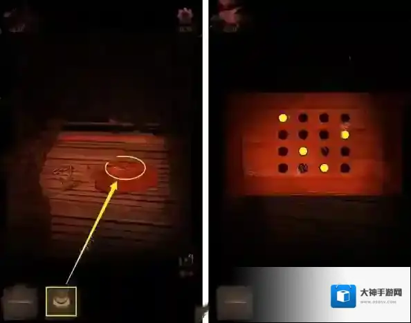 5、在皮包中的图纸线索,我们查看吊桥对应位置,把竹竿调整到正确得图案即可获得图案木条。