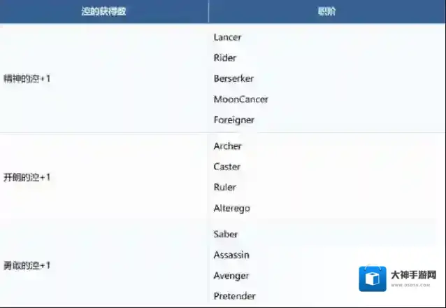 (注意,这两表中的从者不会提供重复加成,均为+1)