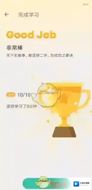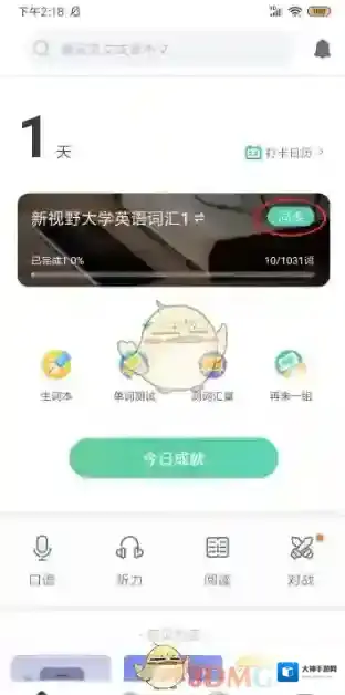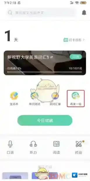 8、再回到首页,就能看到今日的学习任务已完成,累计打卡天数显示为1天。如果还想继续学习,可点击再来一组。
