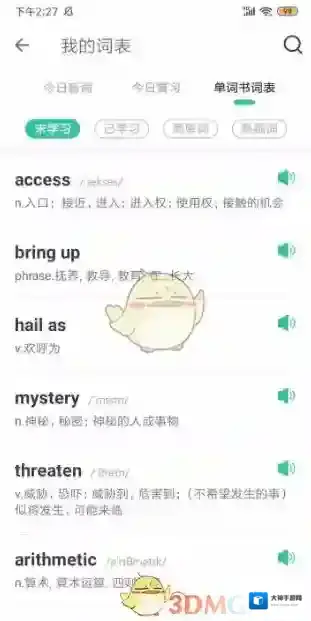 9、点击词表可以查看当前单词书下的单词和掌握程度。