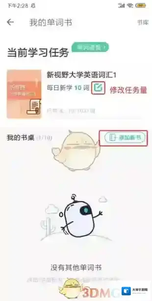 10、点击单词书可进行单词书更换和重新设置学习任务量(任务量由多变少是次日生效)。