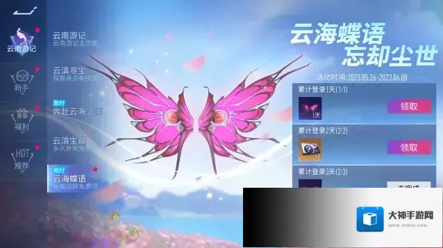 [3]『云海语蝶』:云海蝶语,忘却尘世。5月26日~6月8日 登录游戏领好礼,“粉色花语翅膀”累登即可获得,各位车手快来领取属于自己的粉色花语吧。