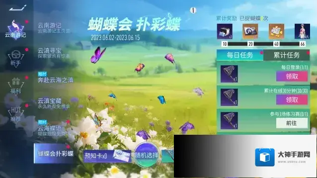 苍山洱海好风光,蝴蝶泉边好梳妆,蝴蝶飞来采花蜜,阿妹梳头为哪桩?6月2日起,参与蝴蝶会扑彩蝶活动,完成任务即可获得捕捉网,捕捉蝴蝶可领超多奖励!还有白族特色服饰『风花雪月』等你哦~