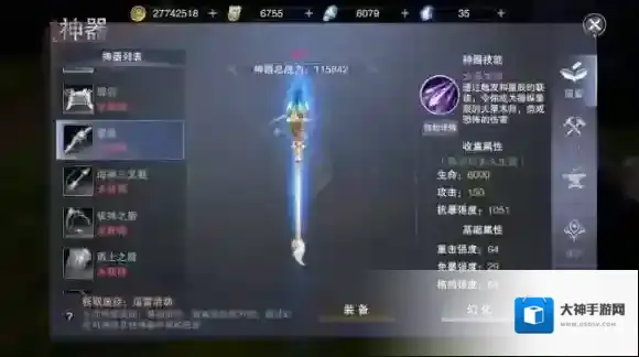 神器系统是独立养成的装备模块,在神器界面内,可进行神器的佩戴和更换,没有激活的神器显示激活和佩戴,已经激活的神器只显示可佩戴。神器收集属性在获得后立即生效,且不同神器之间可以叠加,神器的基础属性和技能只有装备后才会生效。