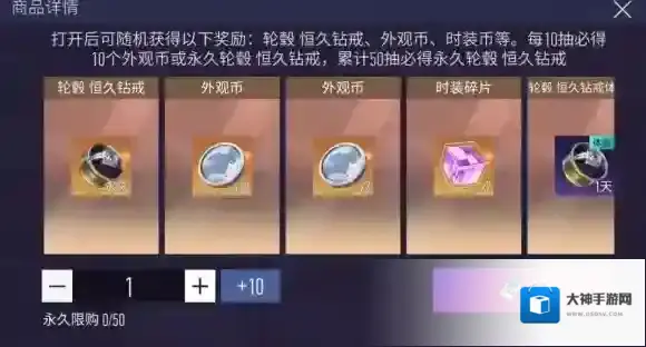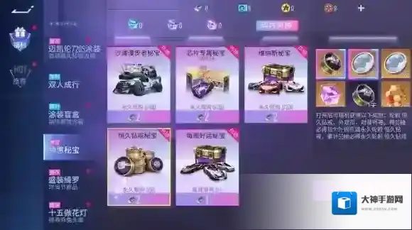 『恒久钻戒秘宝』:开启秘宝后,车手们可随机获得:轮毂-恒久钻戒、外观币、时装碎片等稀有奖励。每10抽必得10个外观币或永久轮毂-恒久钻戒,累计50抽必得永久轮毂-恒久钻戒。