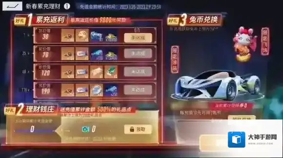 情人节送礼指南已备好,如此多的浪漫好物,每一样都想GET情侣款!在挑选礼物之前,车手们别忘了来参与一年一次的新春理财活动,超丰厚的累充返利帮你将更多心动礼物一次性收入囊中~而新春理财活动也将于今日结束,车手们可以于2月10日起登录领取海量礼品点奖励,千万别错过啦!