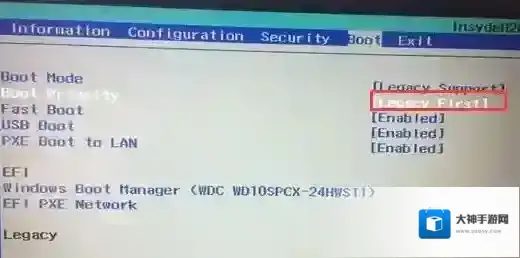 5、再把Boot Priority设置成Legacy First,按F10弹出窗口选择yes回车;
