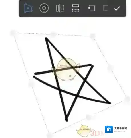 4、在弹出的“变换”功能中点击第一个,五角星周围会出现灰色的点,手指拖动灰色的点就能对五角星进行扭曲变形,双指拖动还能对五角星进行放大、缩小和旋转。