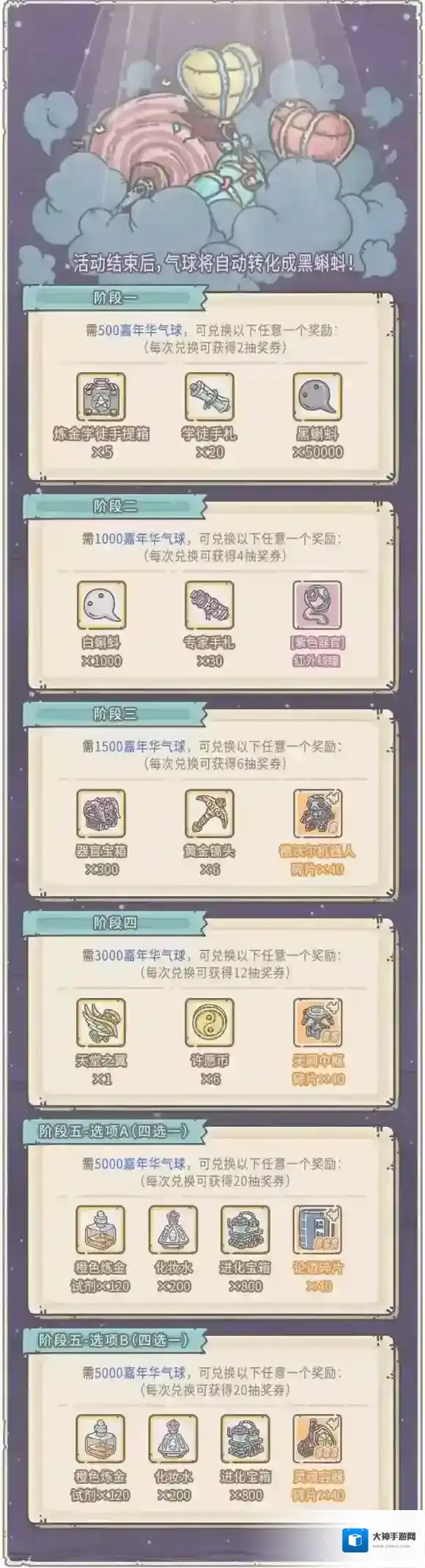 1.活动期间,可消耗活动货币“嘉年华气球”,兑换奖励