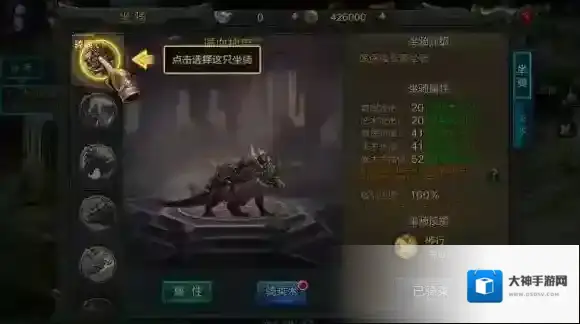 坐骑不仅是拉风的代步工具,而且坐骑还能提供属性加成和技能效果,在跑图的时候骑乘坐骑可以更快达到目的地。在世界聊天的信息栏右侧有一个马形图标,点击即可骑上坐骑,骑乘上坐骑之后,图标变成一个奔跑的小人,再点击图标就可以下坐骑了。