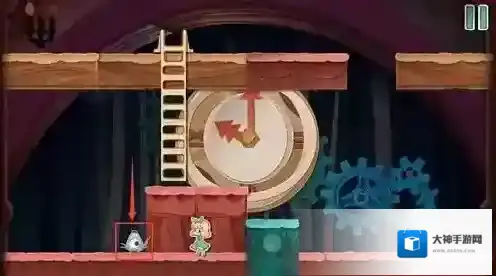 7.从高台上跳下来将老鼠打晕,然后将老鼠放到右边的齿轮动力机里面去。