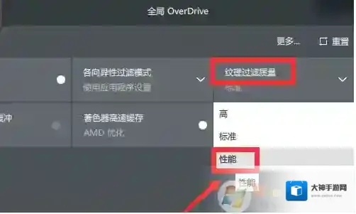 6、纹理过滤质量,从标准调整到性能模式。