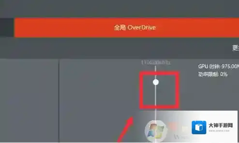 8、最后一步,滑动全局overdrive栏目中的滑杆,把GPU的始终频率到调到最高即可;
