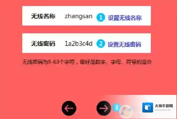 在“无线名称”中设置一个WiFi名称– “无线密码”中设置一个WiFi密码– 点击“下一步”。