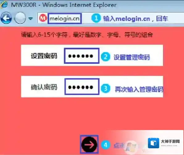 打开电脑上的浏览器,在浏览器地址栏中输入:melogin.cn– 然后按照提示,先给这台新版水星路由器设置一个“登录密码”,如下图所示。