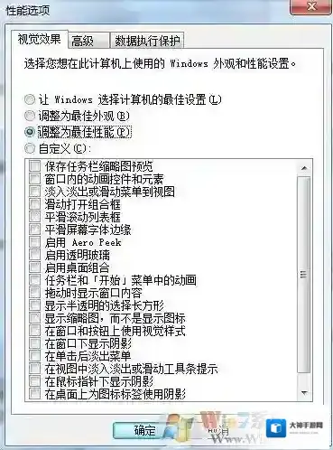 步骤五:减少桌面图标,尽量从 开始-程序 中启动软件。或在桌面建立 文件夹 将图标分类移入,启动时先打开文件夹。步骤六:桌面 就是背景图体积大小不要超过300kb步骤八:我的电脑—属性—-高级系统设置—高级–性能–设置选第一个设置,调整为最佳性能