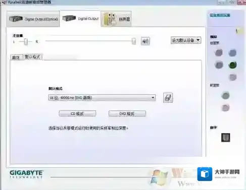 5、这样我们的基本设置就好了,管理器就能识别我们的设备了。下来就是在这个界面中对我们的音频输出做各种设置了,界面相对简单,并且是中文的,字面意思就知道是什么功能的,这里不再赘述。