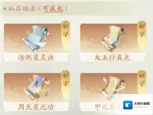 毕业功法即仙品功法,可成长,融合至六重将成长为神品。