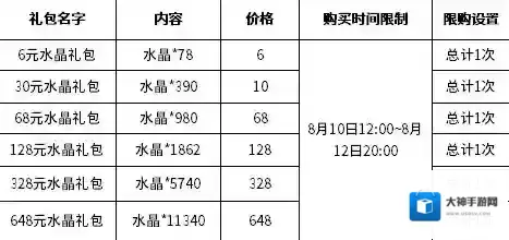 1、限时水晶礼包