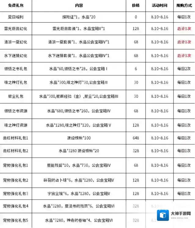 活动时间:8月10日00:00~8月16日23:59