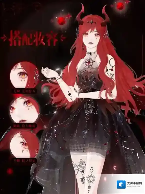 黑色款坠落晨星,则主打一个暗夜小恶魔的概念,风格独特的黑色哥特裙装,神秘魅惑细节满满,同系列发型赤红凝月,可爱与性感并存的波浪卷发,加上配饰点缀,一秒变成漫画风女主。