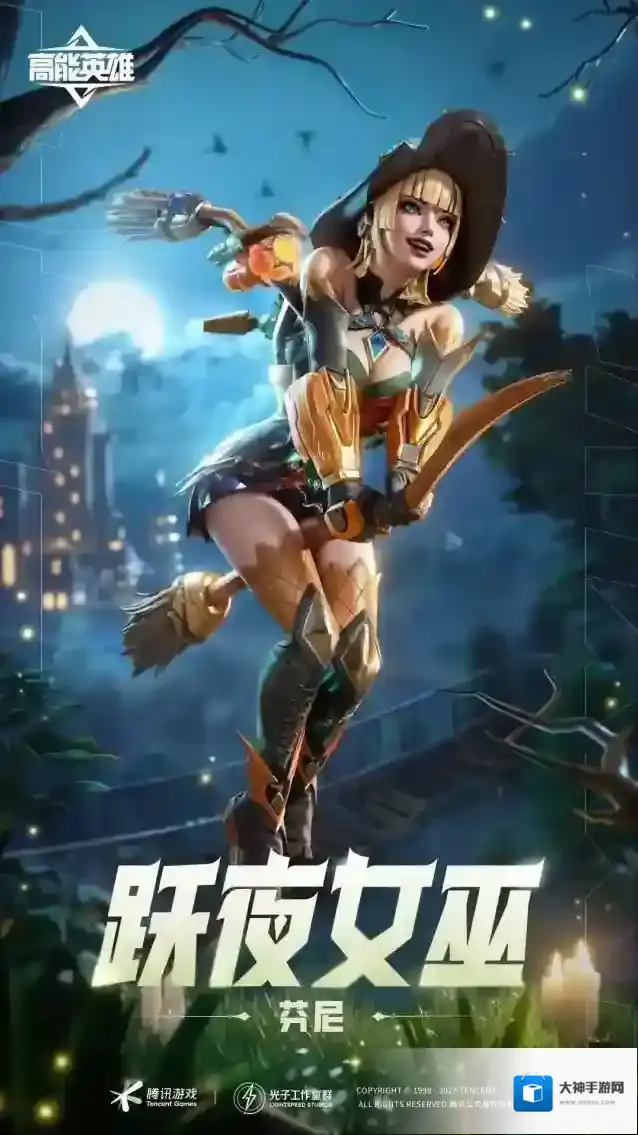 接着是古灵精怪的女巫–「跃夜女巫-芬尼」!她头戴墨绿色女巫帽,身着墨绿色与橙橘色相间的贴身战袍,背部的鎏金色“扫帚式”喷气背包更加凸显出芬尼的古灵精怪!