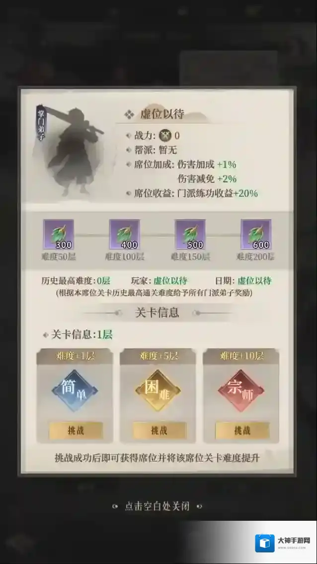 每个门派各有3个门派席位挑战关卡,玩家挑战成功即可占领该席位,并提升该席位难度关卡,其他玩家点击席位可挑战更高难度,挑战成功后代替原玩家占据该席位。