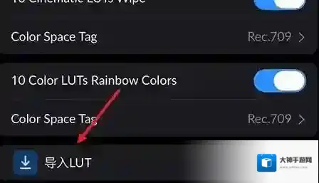 7、跳转界面后,找到底部的导入lut。
