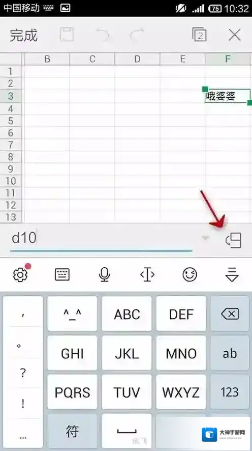 如图,输入横向坐标D,纵向坐标10。格式是D10这样输入即可