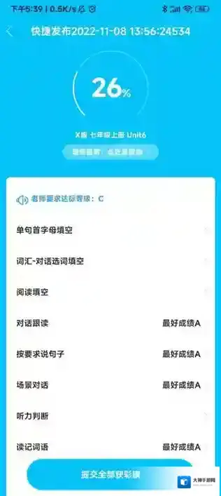 5、任意点击一次考试成绩可以查看到你的考试详情,如图所示英语考试的发音是否纯正等都给你标注的很详细;